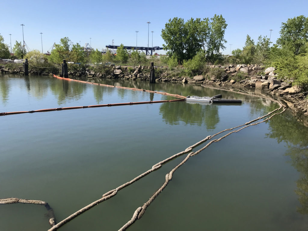 A Debris Interceptor is a collection system designed to capture floating debris from storm water conveyances and outfalls before contaminants reaches waterways. At Sims Metal, the Debris Interceptor collects and traps debris in a channel adjacent to our operations facility positioned to prevent debris from entering the river.
